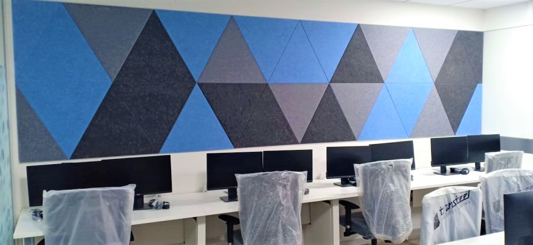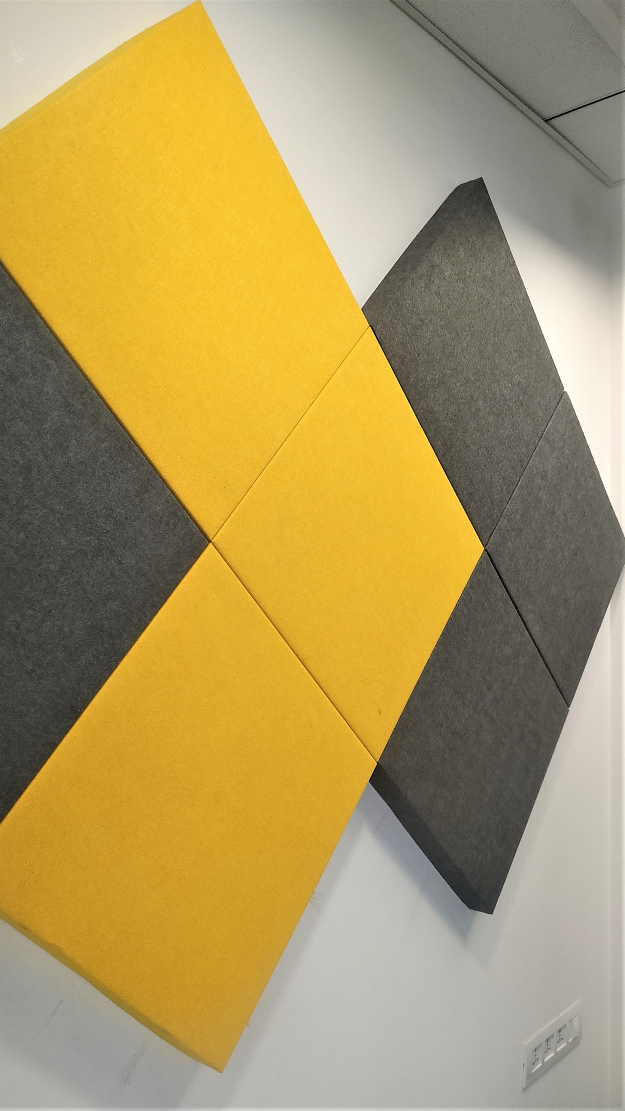 Placing Acoustic Panels on walls or ceilings is the best way to eliminate echo, reverb and reduce overall ambient noise in any room. Common sound issues are caused mostly by sound waves reflecting off walls.